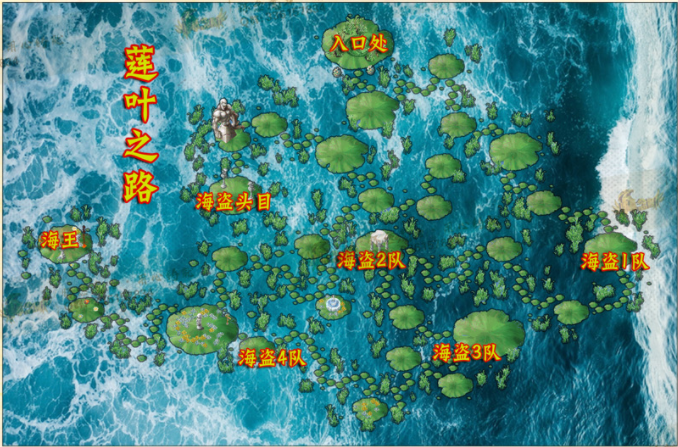 9.莲叶之路被海盗入侵了 依次砍倒守路的海盗 来到莲叶之路 (64.43) 海盗头目处